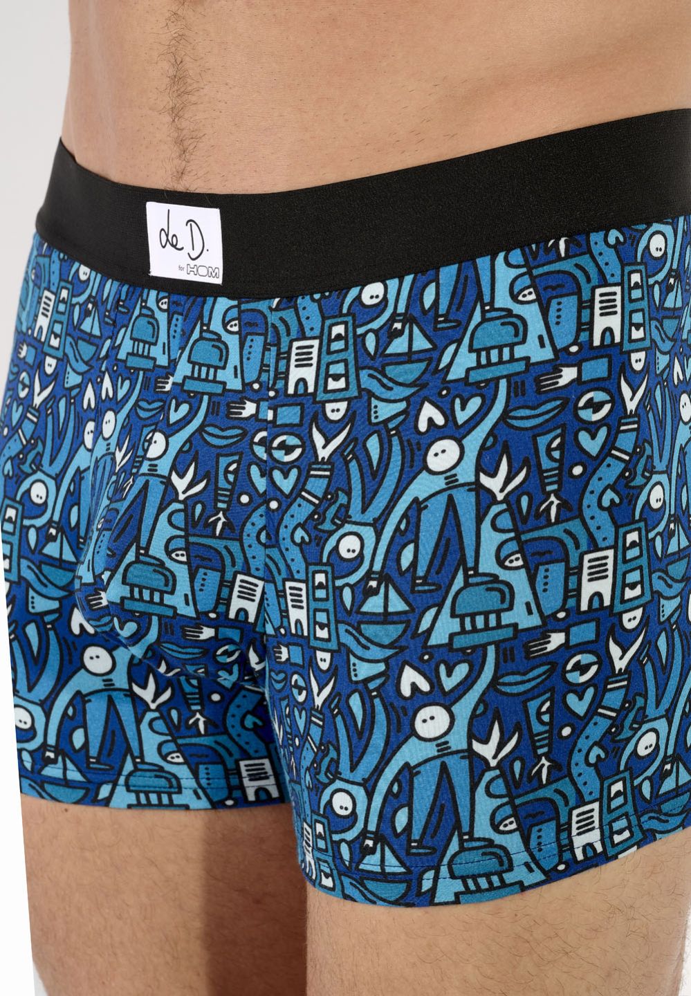 Ce boxer en coton modal particulièrement doux allie confort et style avec des motifs festifs en camaïeu de bleus qui évoquent la ville de Marseille.
