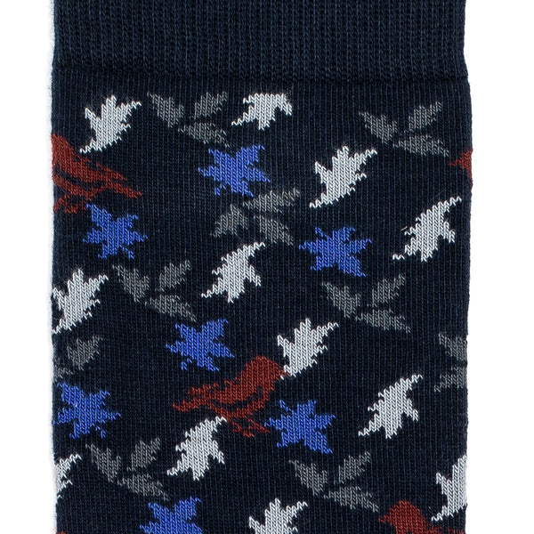 Avec leurs petites feuilles brodés de bleu, blanc et rouge, les chaussettes « Feuillage » rendent un bel hommage à la nature… et au savoir-faire français. Sur un fond bleu marine très élégant, ses motifs discrets rappellent les couleurs de notre drapeau, pour une petite touche de patriotisme.